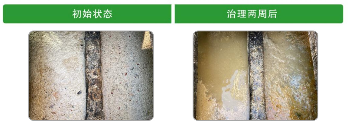 池治理前状态观察:隔油池体量约15立方,池内有大量塑料袋油脂漂浮,油脂厚约30公分,气味刺鼻,颜色发黄。