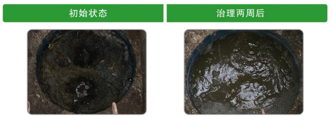 成都银桂花园小区化粪池之前采用传统吸粪车施工,施工过程臭味过重,噪音较大对小区居民生活影响严重,施工是粪便对周边环境影响较大。打开井盖可见大量蚊虫,粪便结块严重,过道井接近满溢。