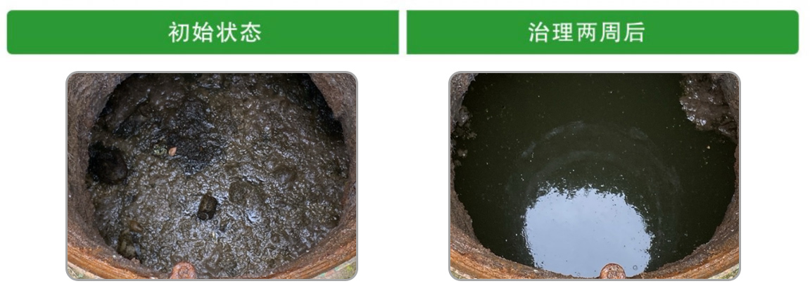 化粪池内油脂结块发黑,厚约30公分,气味腥臭,水质发黑,池内塑料袋等垃圾过多。